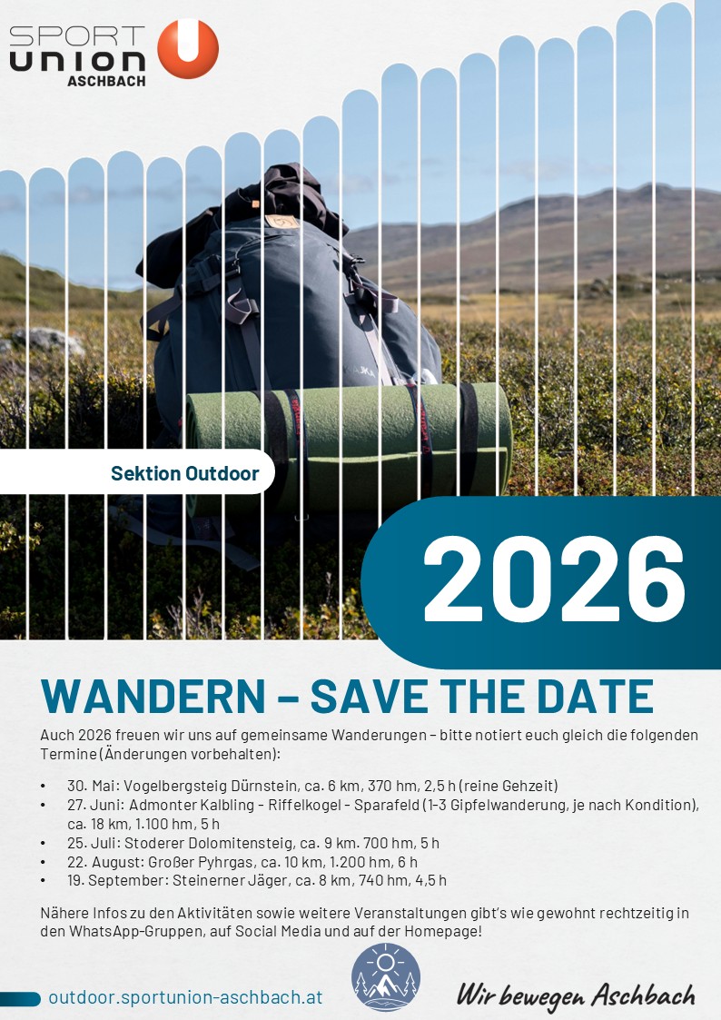 Bitte merkt euch die Termine am besten schon jetzt vor. Alle Details zu den einzelnen Wanderungen, zur Anmeldung und zur jeweiligen Organisation folgen wie gewohnt rechtzeitig über unsere WhatsApp-Gruppen, auf Social Media und hier auf der Homepage.